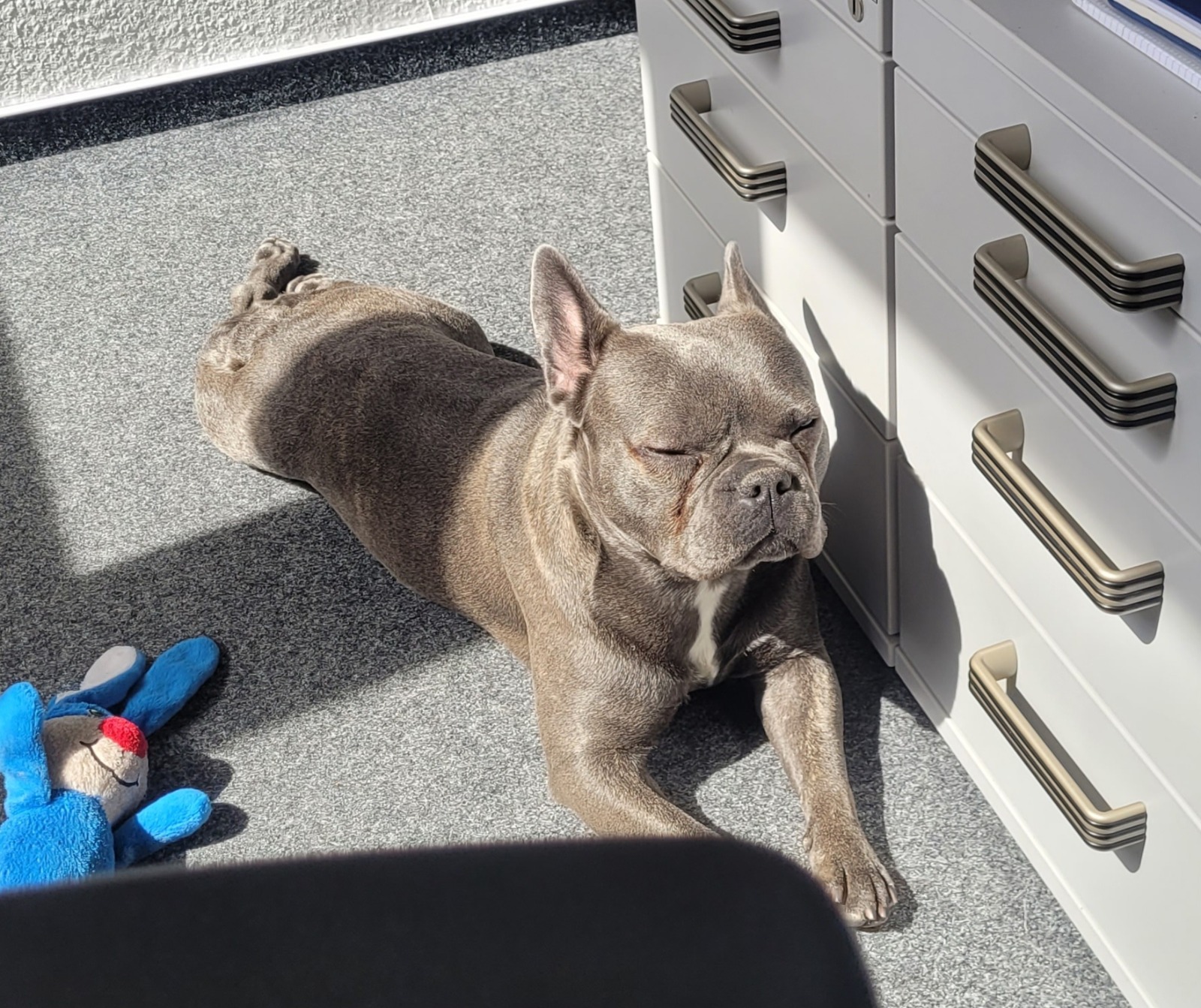 Lola ist eine Französische Bulldogge. Uns ist bewusst, dass diese Rasse zu den Qualzuchten zählt und die blaue Fellfarbe evtl zusätzliche mögliche gesundheitliche Risiken mit sich bringen kann. Lola ist aktuell krankenversichert.