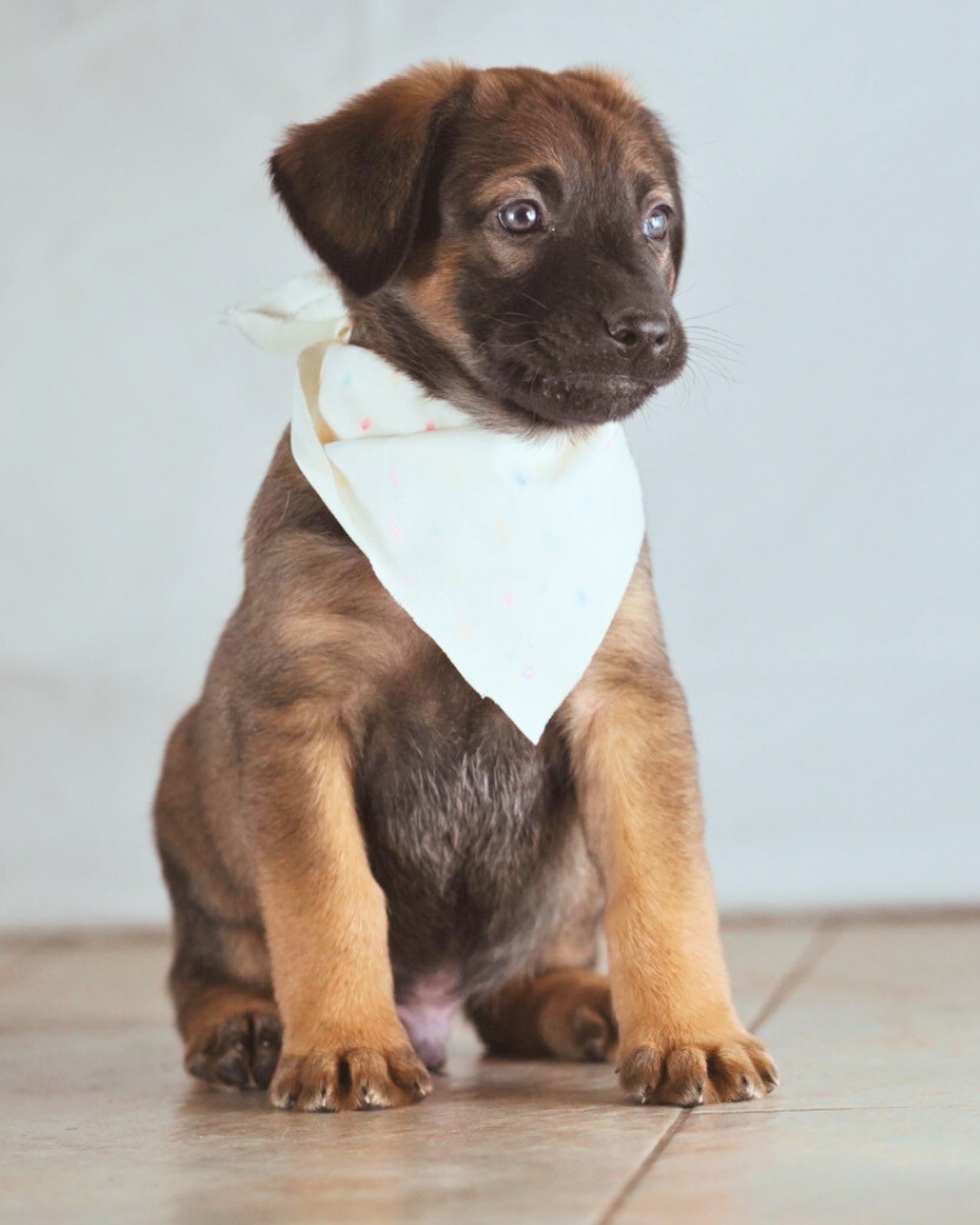 Tanjo wiegt mit seinen sechseinhalb Wochen etwa 5 kg. Er ist der größte im Wurf und ein kleiner Draufgänger. Mutig erkundet er die Welt und ist meist ganz vorne mit dabei. Ob Spieltunnel oder Wackelbrücke – für ihn scheint alles selbstverständlich zu sein. Er liebt die Aufmerksamkeit seiner Menschen und weiß ganz genau, wie er sie bekommt. Tanjo kennt bereits das Zusammenleben mit Hunden unterschiedlicher Rassen und Größen und wird zudem mit Katzen sowie älteren Kindern sozialisiert.